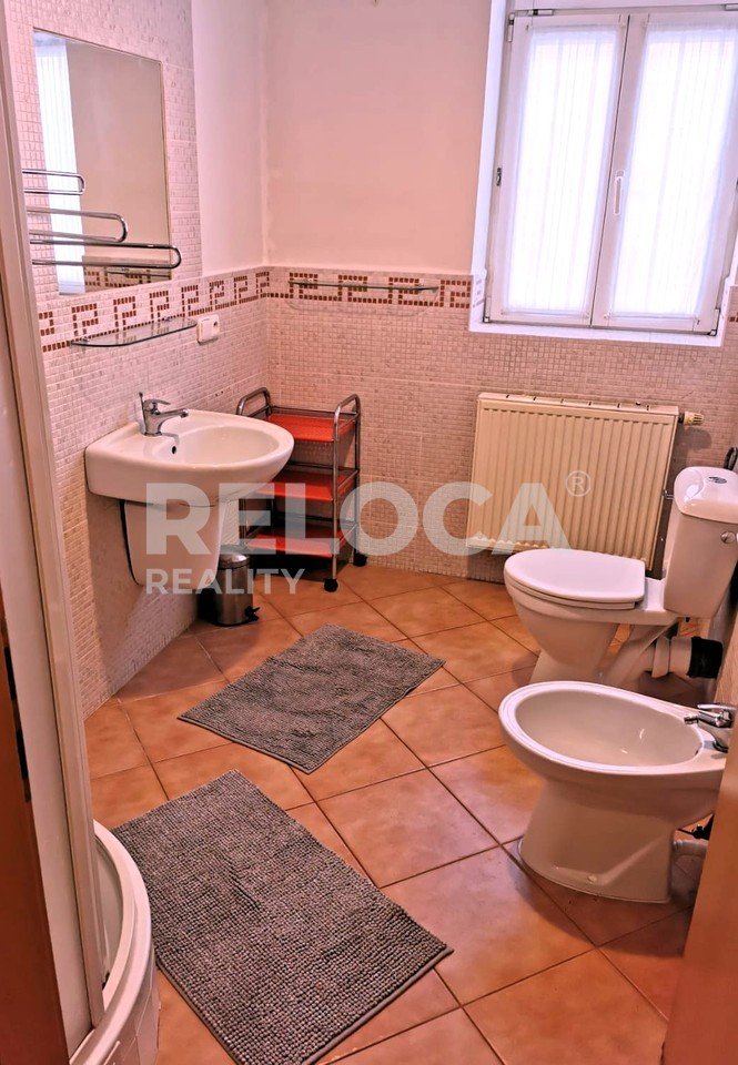 Koupelna se sprchovým koutem a bidetem. Podlahy dlažba. Terasa 10m2.